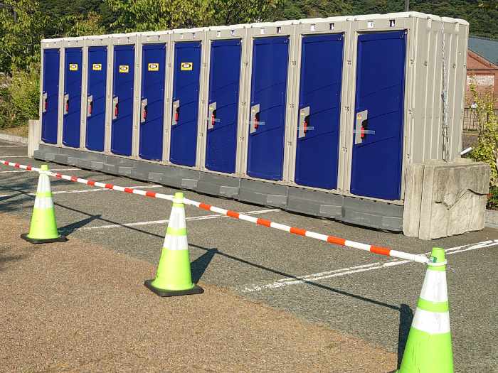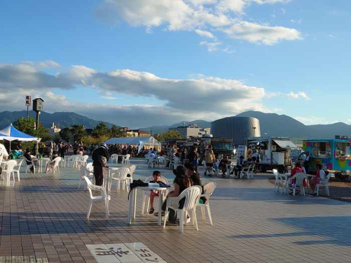きらめきみなと館/敦賀市民文化センターで初めて開催される大型ロックフェス「おぼろっく2024」の飲食ブースの会場設営、交通規制看板設置をしました。