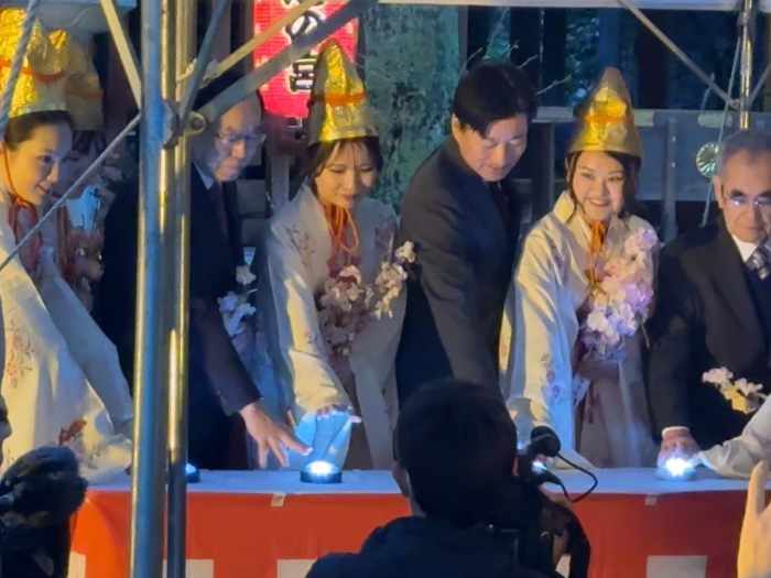 点灯式のテントや紅白、音響設備の設置をしました。